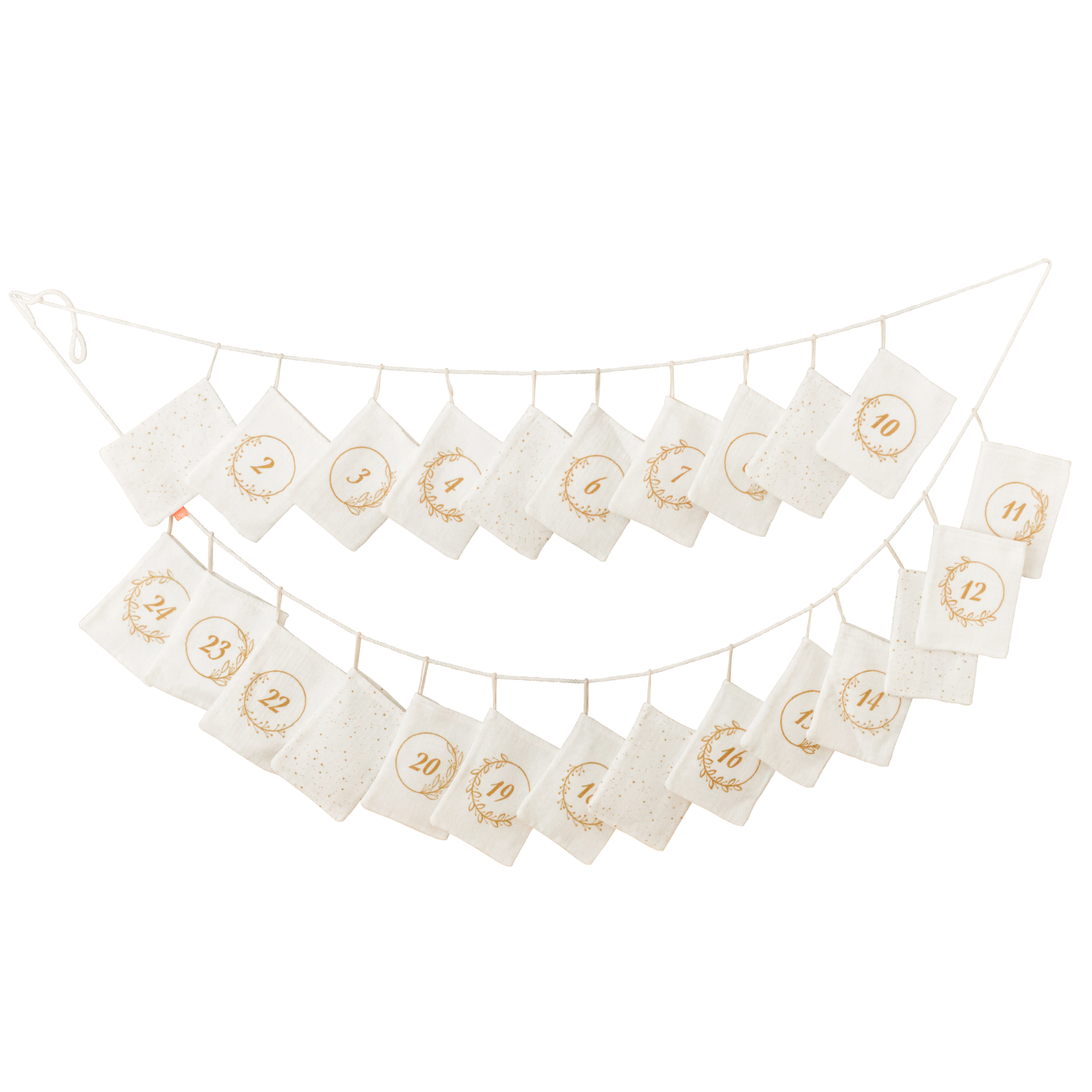 Ein wunderschöner Kalender von Kikadu für die Vorweihnachtszeit! Der Adventskalender besteht aus 24 Säckchen gefertigt aus Bio-Baumwolle mit 24 aufgedruckten Zahlen. Die Säckchen warten nur noch darauf warten von euch befüllt zu werden. Dieses schöne Stück ist flexibel und lässt sich leicht an Treppen, Wänden und Türen befestigen. Ein wunderschöner Kalender, der euch und eure Kinder viele Jahre begleiten wird und jedes Jahr aufs Neue Freude bereitet. Maße: 270cm. Pflege; Handwäsche kalt.