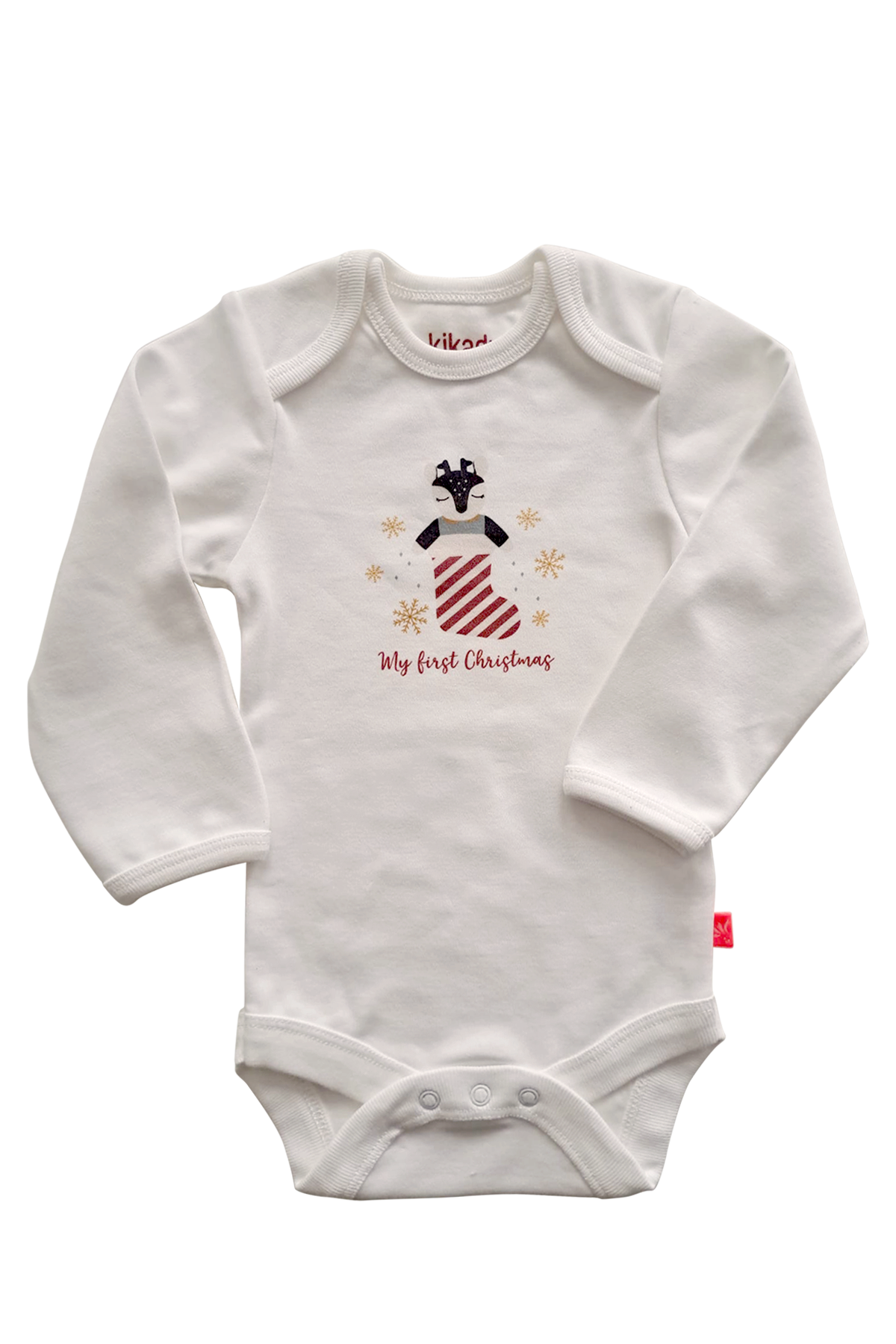 Der niedliche "My First Christmas" Langarm- Body von kikadu, aus 100% Bio-Baumwolle ist das perfekte Outfit für das erste Weihnachtsfest deines Babys.
