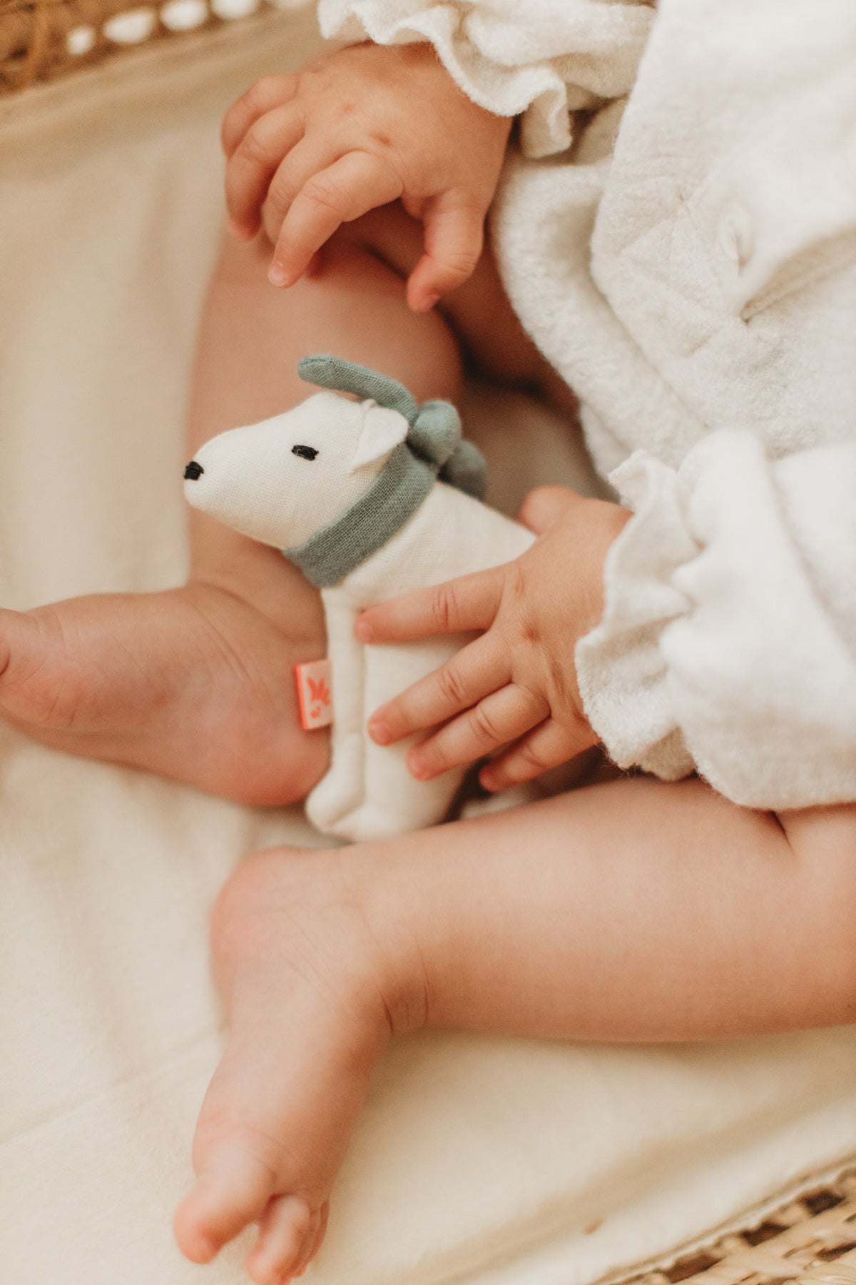 Ihr Baby kann den kleinen Eisbären mit seinen kleinen Händchen problemlos greifen.