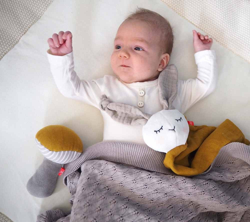 Dieses Schmusetuch ist GOTS zertifiziert und eine tolle Geschenkidee zur Geburt.