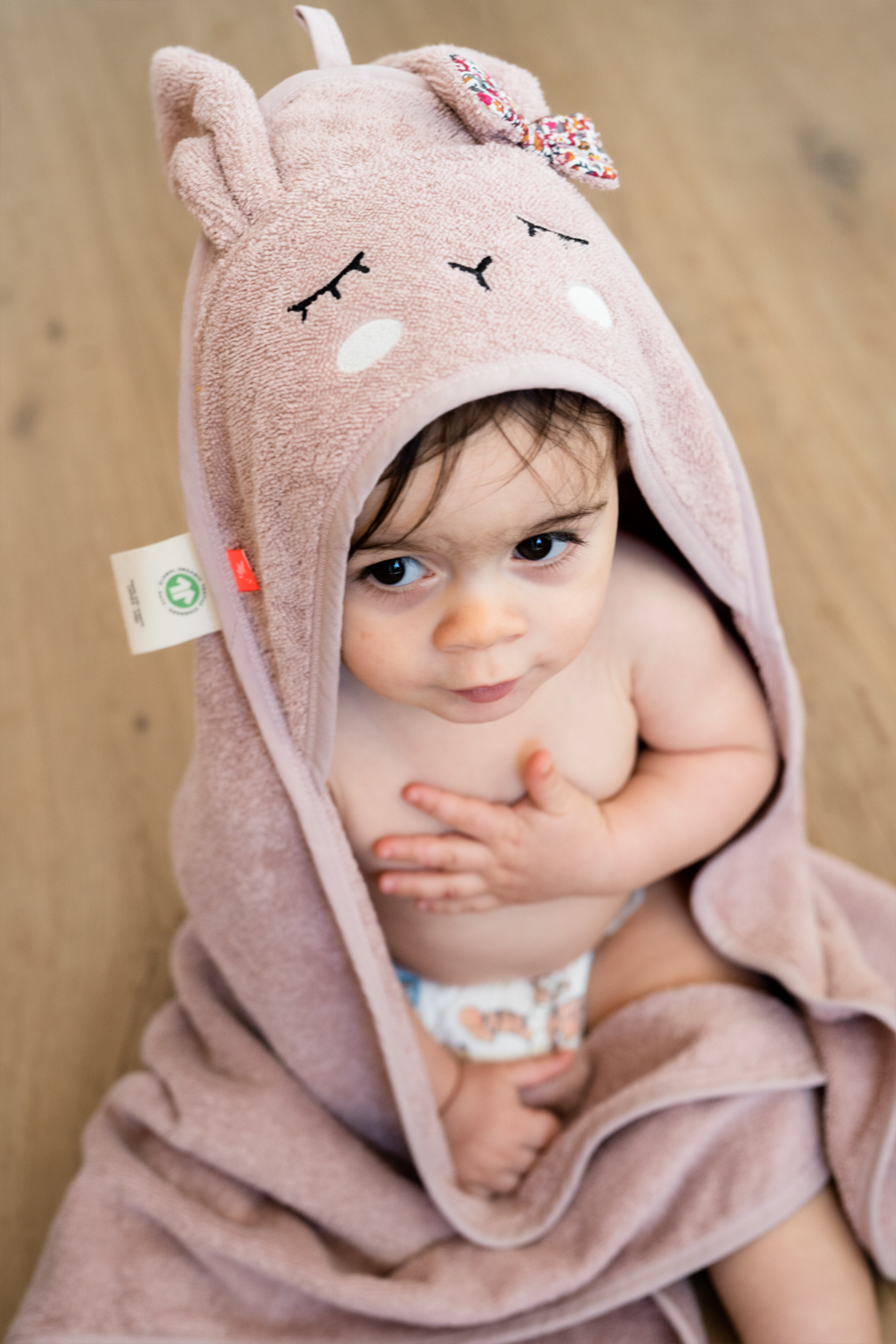 Das Handtuch ist zu 100% aus GOTS zertifizierter Bio-Baumwolle und dadurch kuschelig weich und hält Dein Kind nach dem Baden angenehm warm.