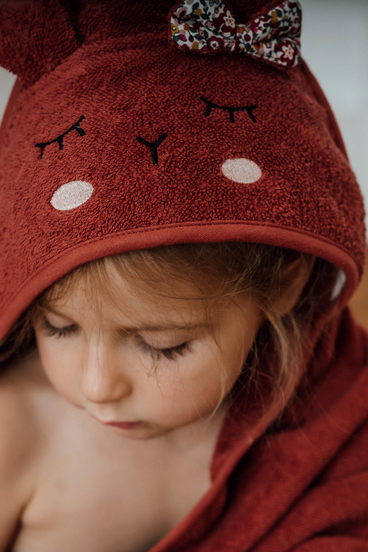 Das Handtuch ist zu 100% Bio-Baumwolle und dadurch kuschelig weich und hält Dein Kind nach dem Baden angenehm warm.