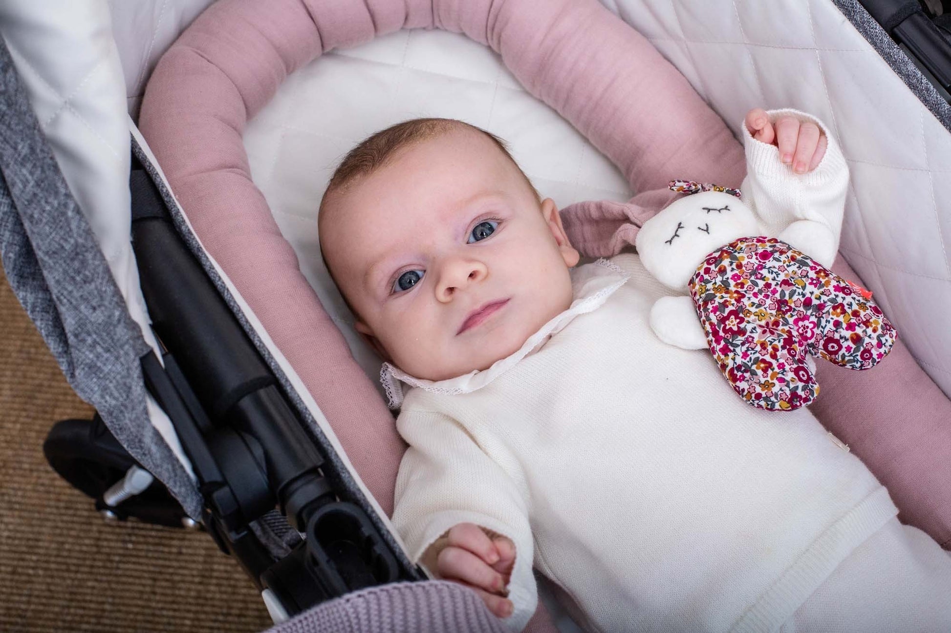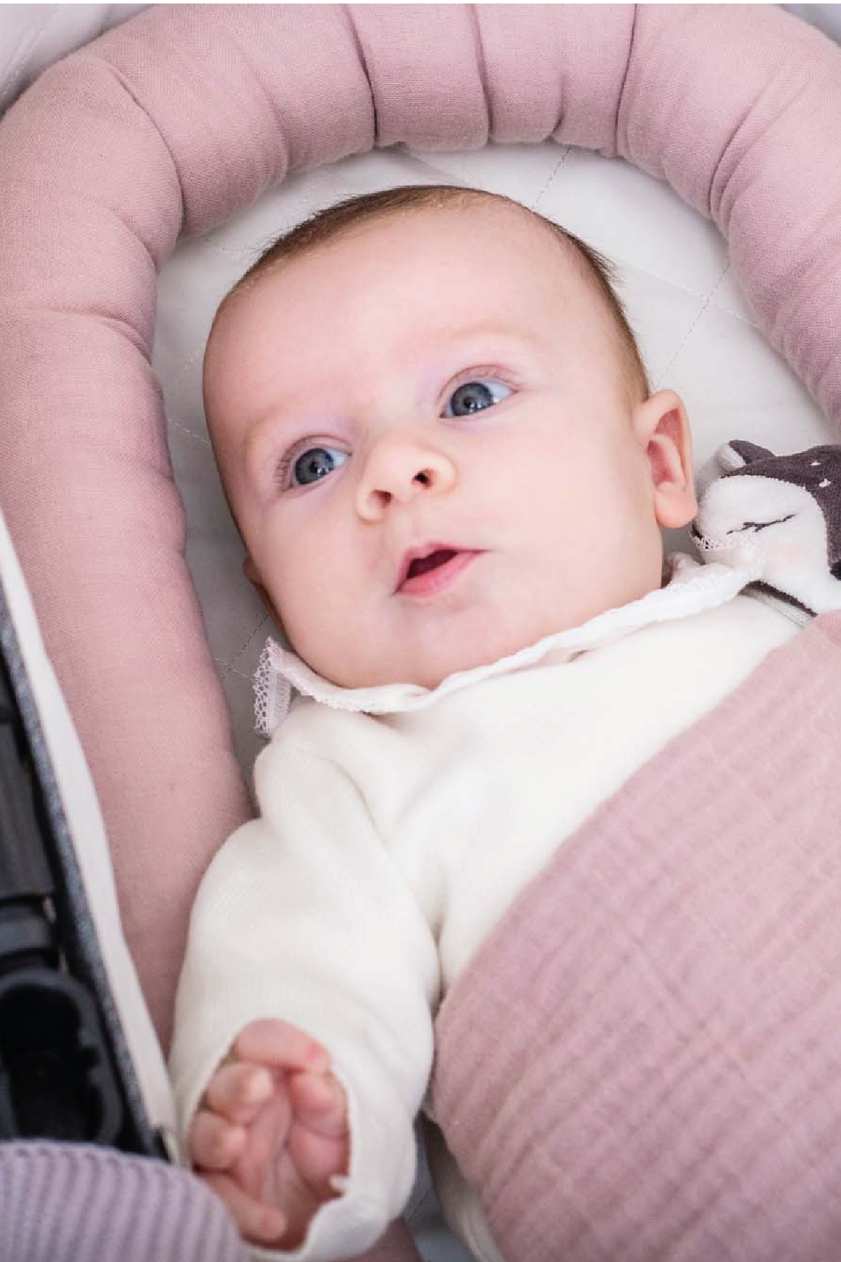 Die kleine Kinderwagenschlange von Kikadu für die Babyschale behütet Ihr Kind Tagsüber im Kinderwagen.