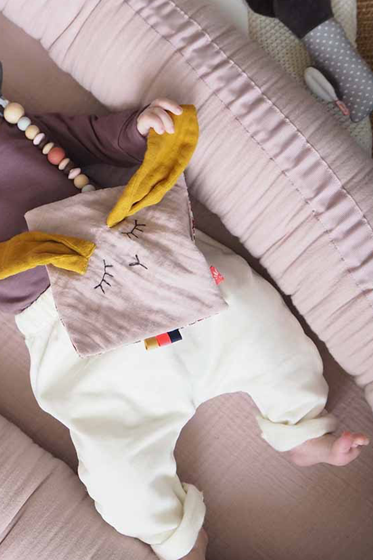 Das Knisterbuch von Kikadu hat süße Hasenohren und fördert auf spielerische Art und Weise die Feinmotorik Ihres Babys.