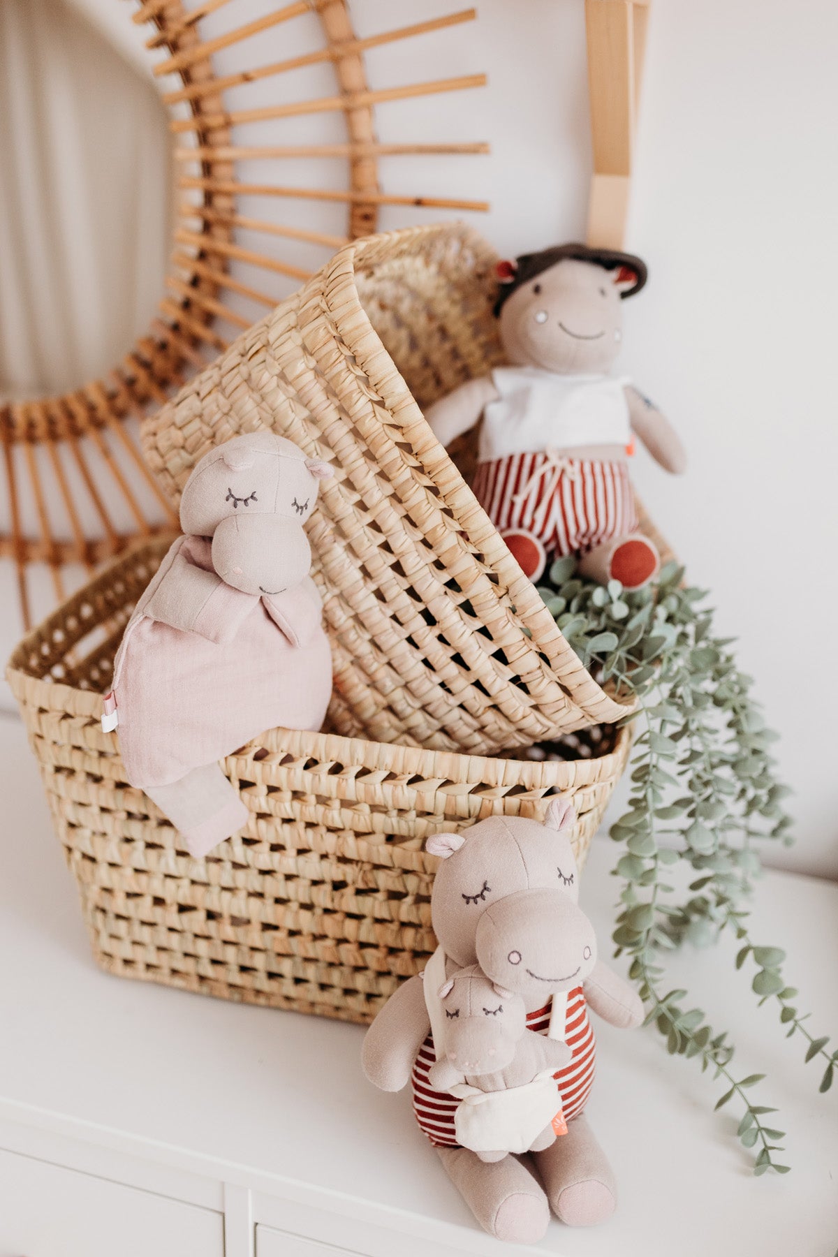 Die handgefertigten quadratischen kikadu Körbe aus Palmblättern sind praktische und dekorative Organizer für dein Zuhause oder das Kinderzimmer.