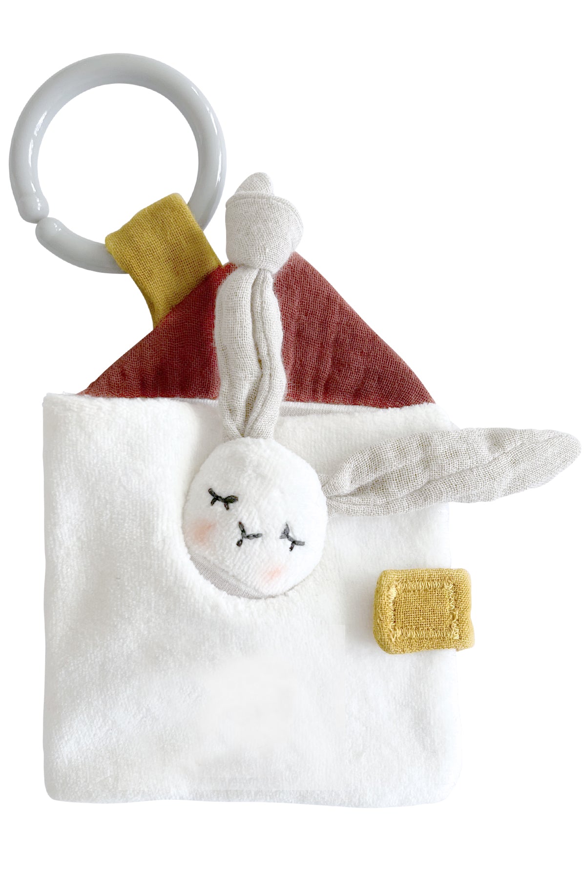 Aus dem kleinen Hasenhausbuch von Kikadu schaut ein kleiner Hase hervor. Rascheleffekte unter den flauschigen Stoffen, die sich unterschiedlich anfühlen, wecken die Neugier deines Babys und fördern seine Sinne. Im Inneren des Buches wartet ein Hasen-Püppchen darauf von deinem Baby entdeckt zu werden. Das Hasenbuch ist ein super Begleiter für unterwegs und kann, dank des Rings, am Kinderwagen oder dem Autositz angebracht werden. So kann sich dein Baby jederzeit und überall daran erfreuen.