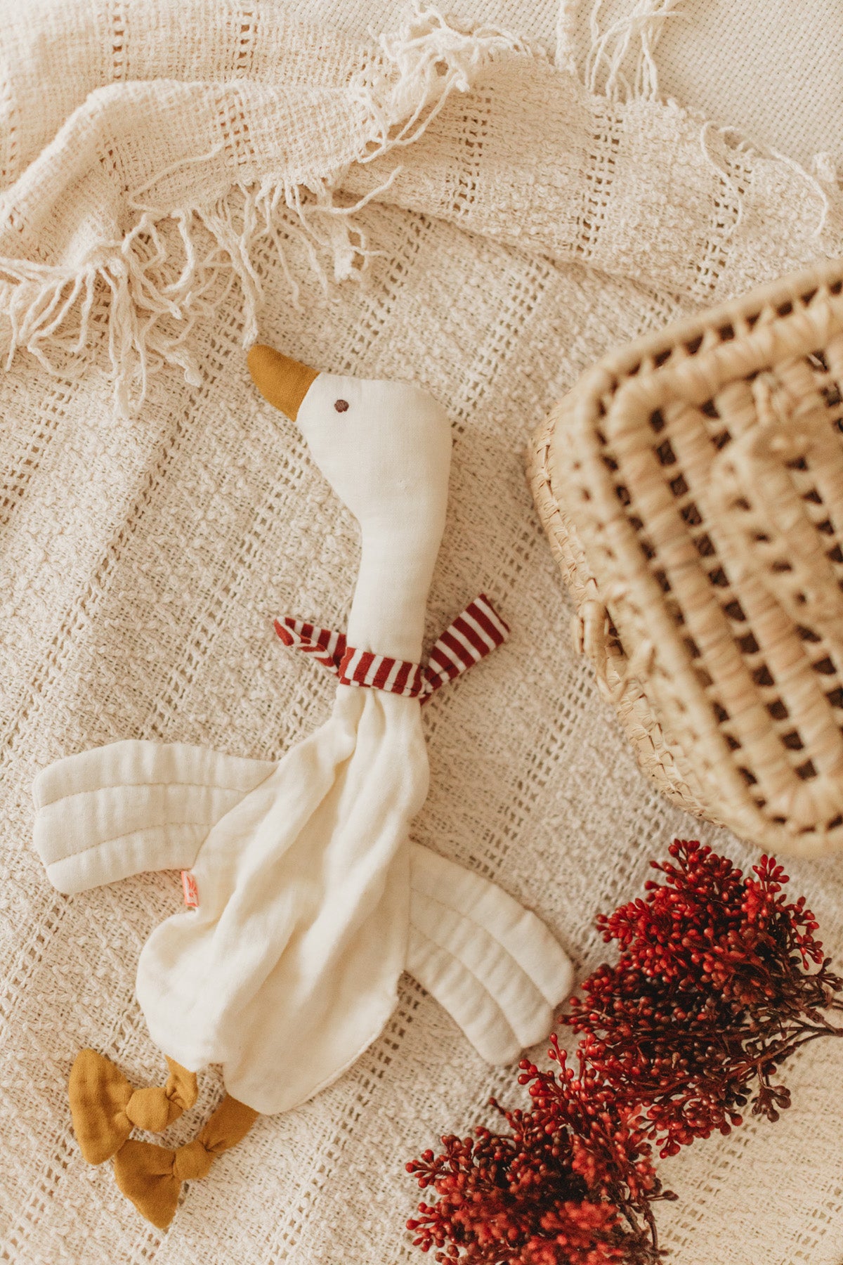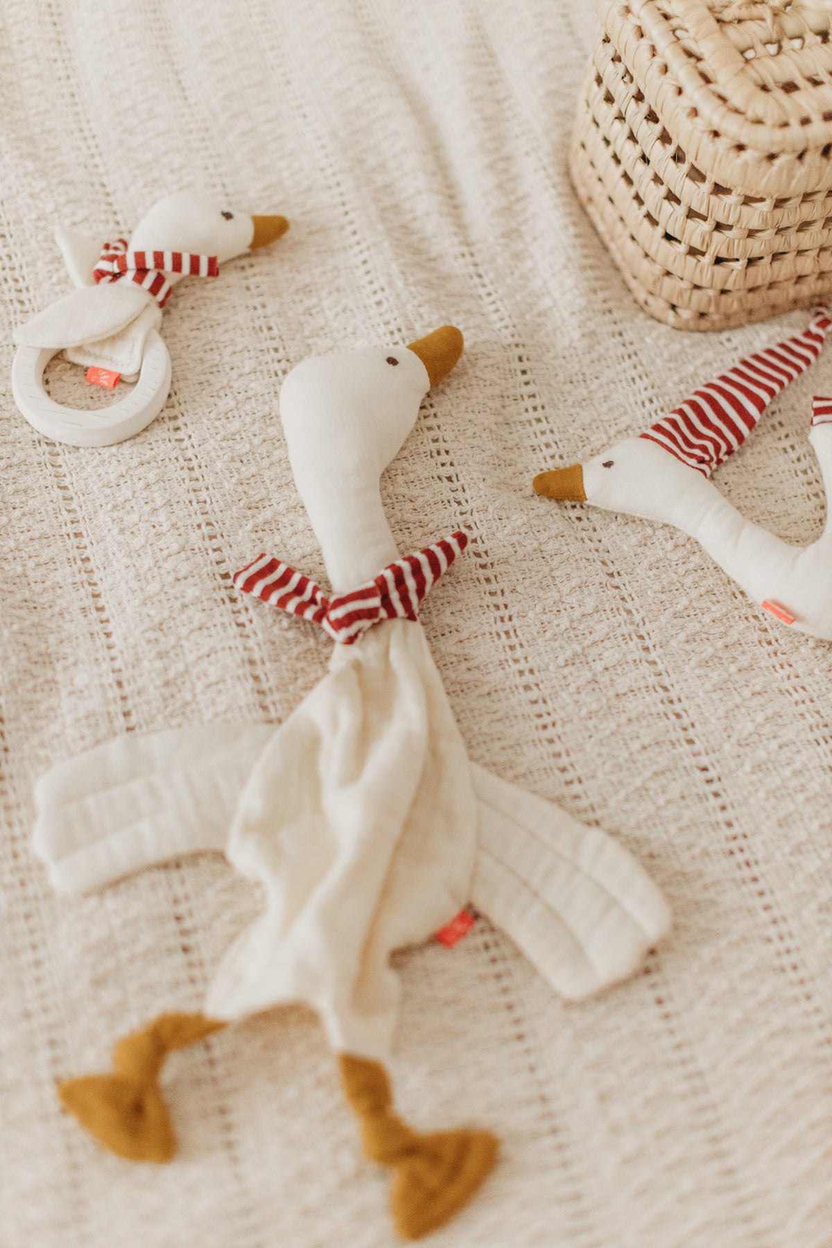 Schenken Sie Geborgenheit und Wohlbefinden mit diesem hübschen Schmusetuch im Gans-Design von Kikadu.