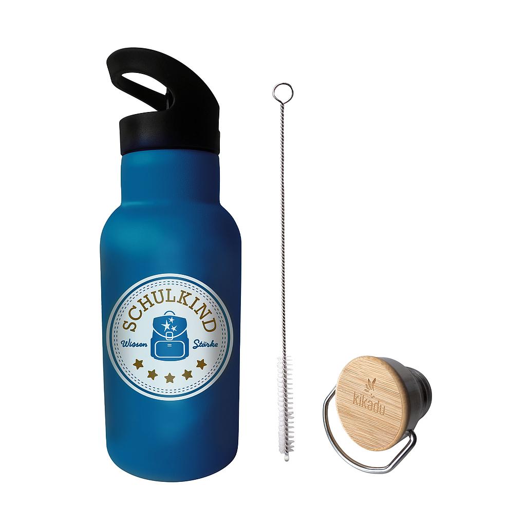 Die hübsche Trinkflasche mit der Aufschrift „Schulkind“ eignet sich ideal für den Schulalltag. Die doppelwandige, schadstofffreie Flasche aus Edelstahl kann kohlensäurefreie kühle als auch warme Getränke bis zu 12 Stunden kalt bzw. warm halten. Sie wird mit zwei Trinkverschlüssen geliefert, einmal als Edelstahldeckel und einmal als Sport-Deckel mit Trinkmöglichkeit. Sie schließen dicht mit der Flasche ab, so dass nichts auslaufen kann.
