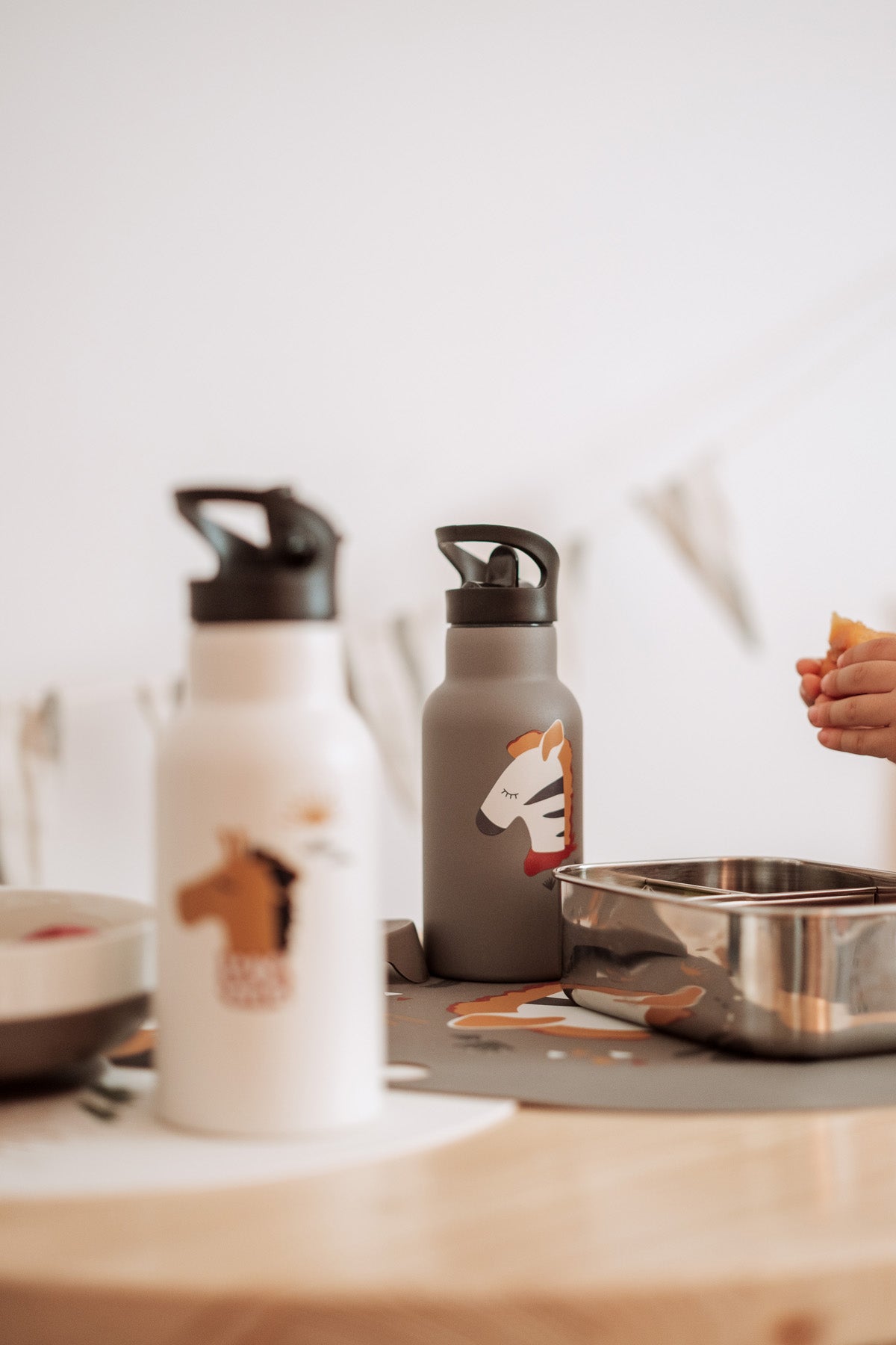 Die hübschen Trinkflaschen von kikdadu mit niedlichen Tiergesichter-Aufdrucken eignen sich für Kindergarten, Schule, Sport und weitere Unternehmungen.