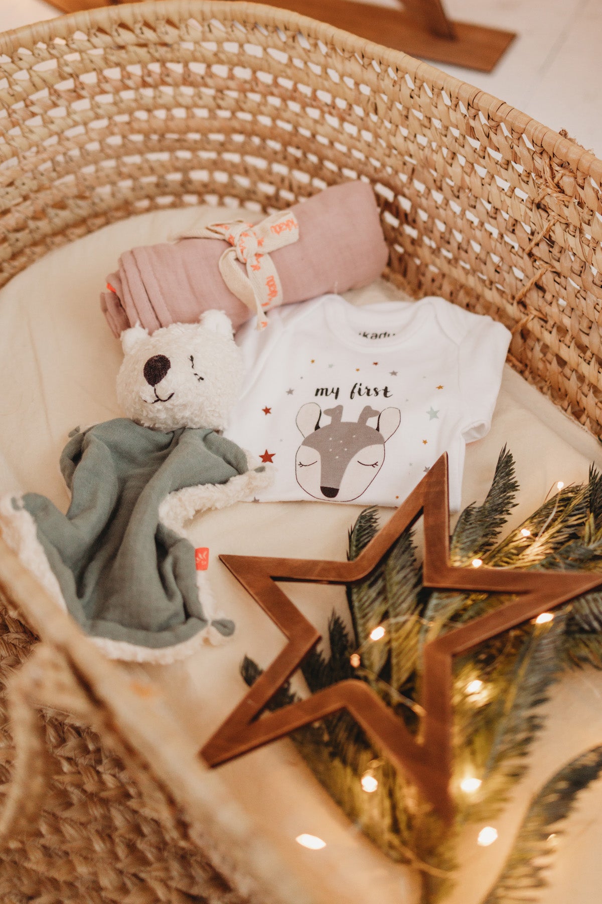Das erste Weihnachtsfest als Eltern, sollte ganz besonders gefeiert werden. Dieser zuckersüße my first Xmas Body von Kikadu, ist eine schöne Geschenkidee zur Geburt und das perfekte Outfit für die diesjährige Weihnachtskarte. Oma und Opa und auch alle anderen, werden begeistert sein, Ihren Liebling in diesem Outfit zu sehen. Der Body ist aus 100% Bio-Baumwolle. Größe: 50/56. Pflege: Bei 40 Grad waschbar.
